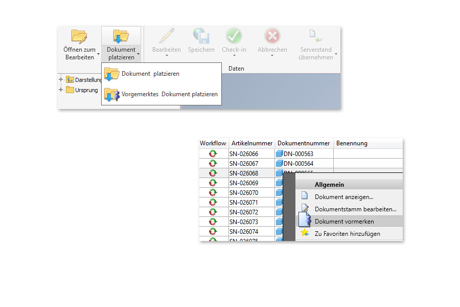 Die im Arbeitsbereich angezeigten Dokumente können jetzt auch dahingehend gefiltert werden, dass lediglich die direkt geöffneten Dokumente angezeigt werden. Dies macht den Arbeitsbereich bei vielen parallel geöffneten Dokumenten übersichtlicher.