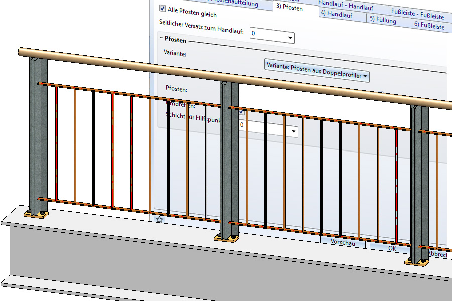 Bei der Erzeugung von Geländern lassen sich ab SP2 auch Doppelprofile als Pfosten wählen.