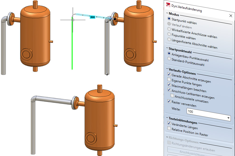 Rohrleitungsverlauf ändern - Erzeugung gerader Abschnitte