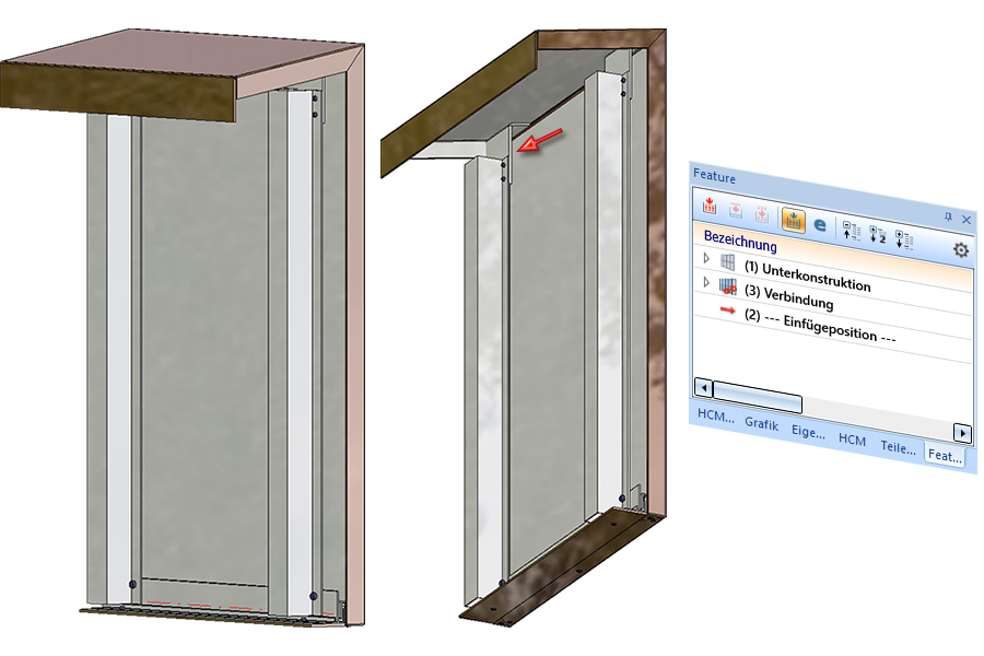 Für HCM-Bedingungen, die sich auf ein Koordinatensystemelement wie eine Ebene oder Achse beziehen, sind die Texte verkürzt worden, so dass die Auflistung der Bedingungen im ICN kompakter und übersichtlicher ist. Zudem werden nun die betroffenen Koordinatensystemelemente auch in der Konstruktion hervorgehoben, wenn ein entsprechender Eintrag im ICN ausgewählt wird.