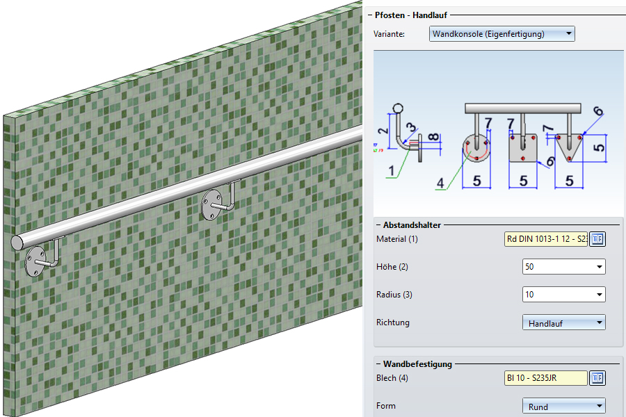 Geländerkonfigurator - Handläufe mit Wandbefestigung