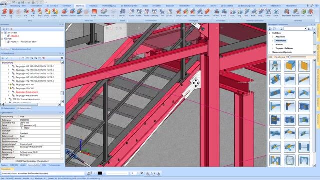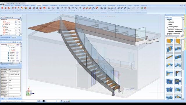 Avec la macro d'escaliers et de garde-corps, HiCAD est une aide réelle : les escaliers et les garde-corps peuvent être facilement configurés et chargés dans HiCAD. Vous pouvez également réagir rapidement aux demandes de changement qui surviennent et modifier la forme, le modèle et le type de fixation de votre rampe ou de votre escalier.