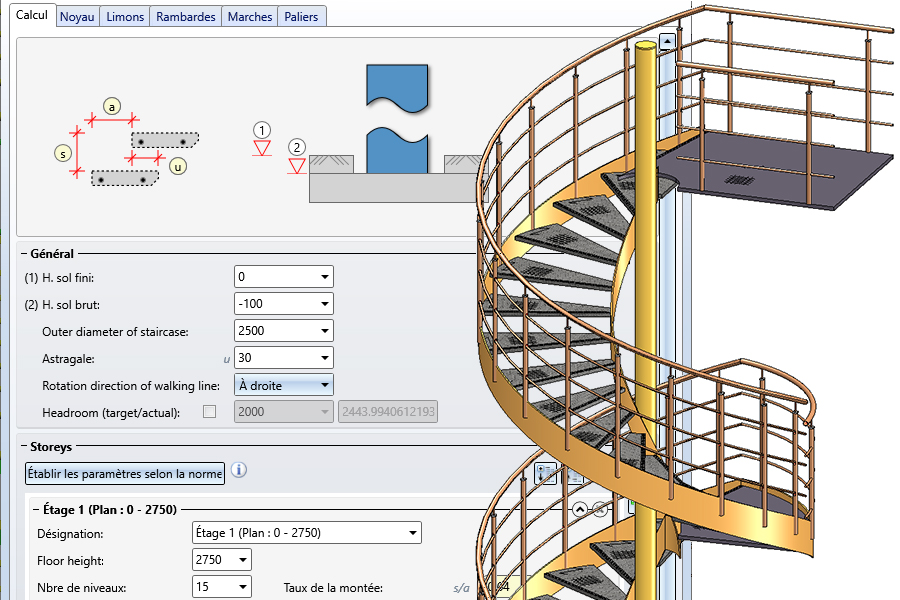 Première ébauche du configurateur d'escaliers en colimaçon