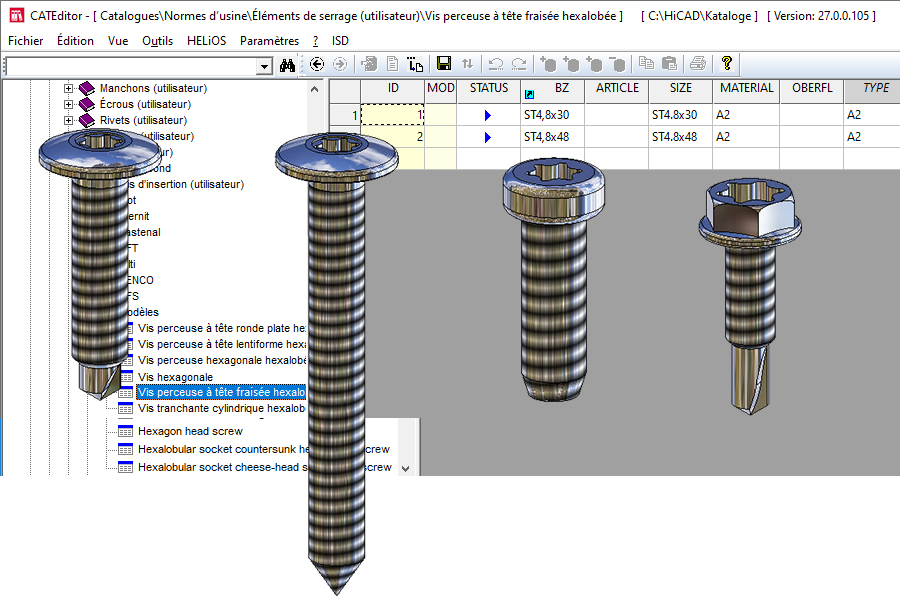 À partir de HiCAD 2022, vous disposez de modèles ISD pour les vis taraudeuses suivantes :