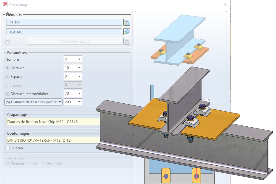 Une fonction est nouvelle dans la fenêtre d'ancrage des Fonctions du bâtiment : Crapautage. Les plaques de fixation (ou crapauds) entrent en action lorsque des pièces ne devront être ni vissées ni soudées directement les unes aux autres. Les connexions suivantes sont disponibles :
